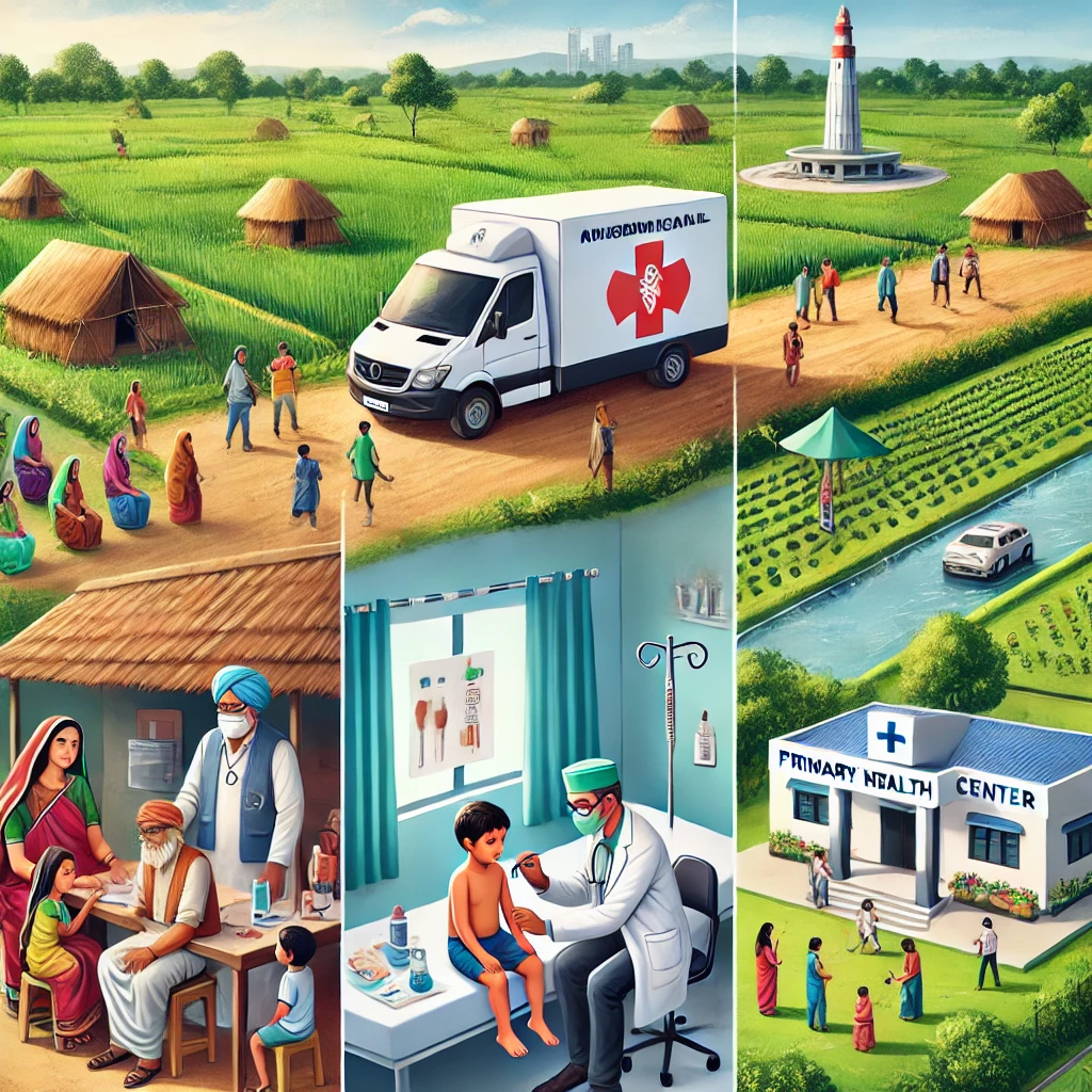 गांव में प्राथमिक स्वास्थ्य केंद्र (PHC)।